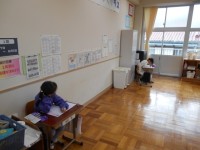 2年生は、国語の時間に「風のゆうびんやさん」の単元テストに取り組んでいました。文...